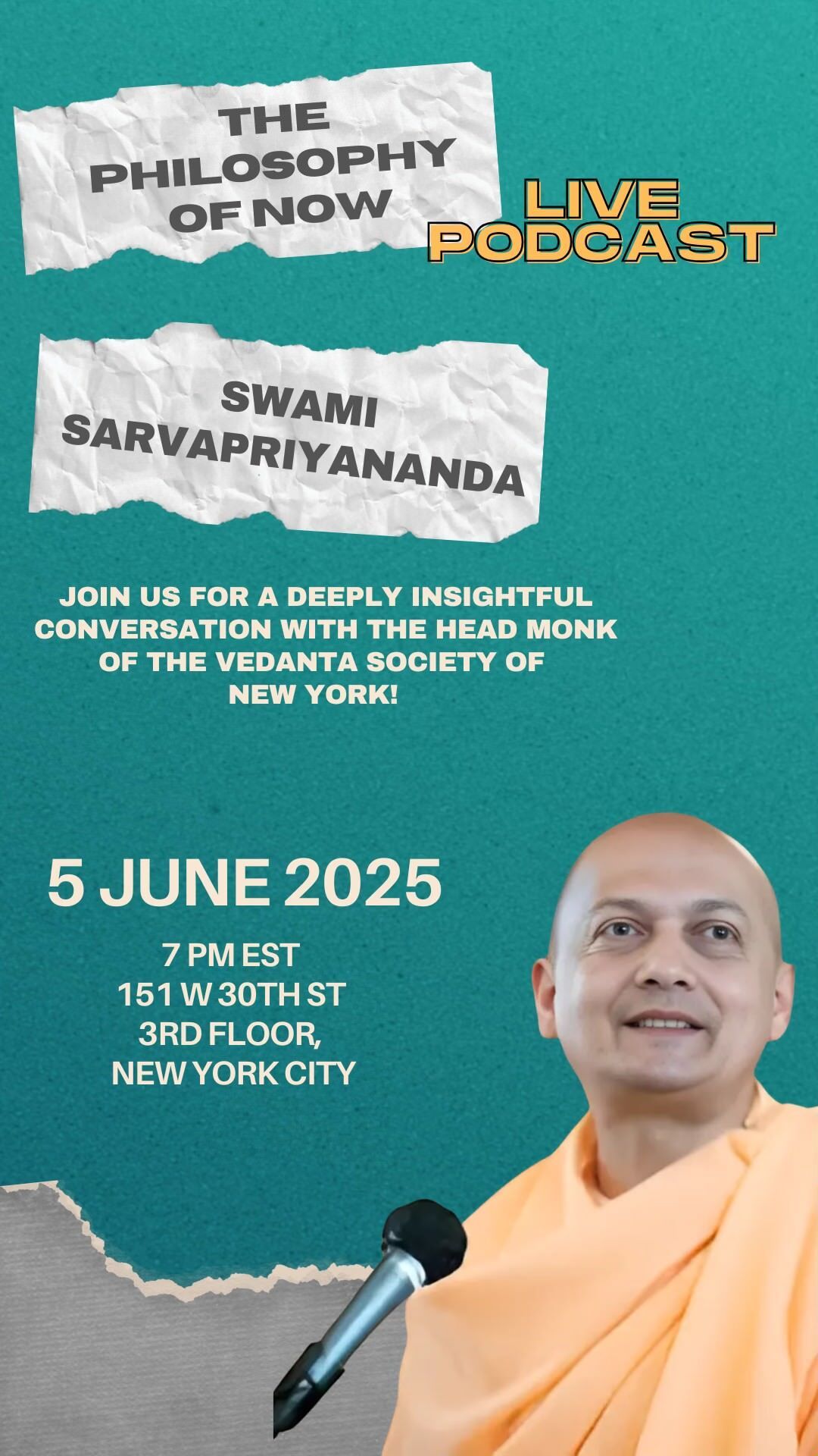 So, we are doing our first live event with the head monk of the Vedanta Center of New York, Swami Sarvapriyananda. Yes, it will include an interview and conversation, but it is more so a gathering of individuals looking to go deeper within and interrogate the nature of their lives. REGISTER HERE: https://www.eventbrite.com/e/the-philosophy-of-now-with-swami-sarvapriyananda-tickets-1378184760719?aff=oddtdtcreator